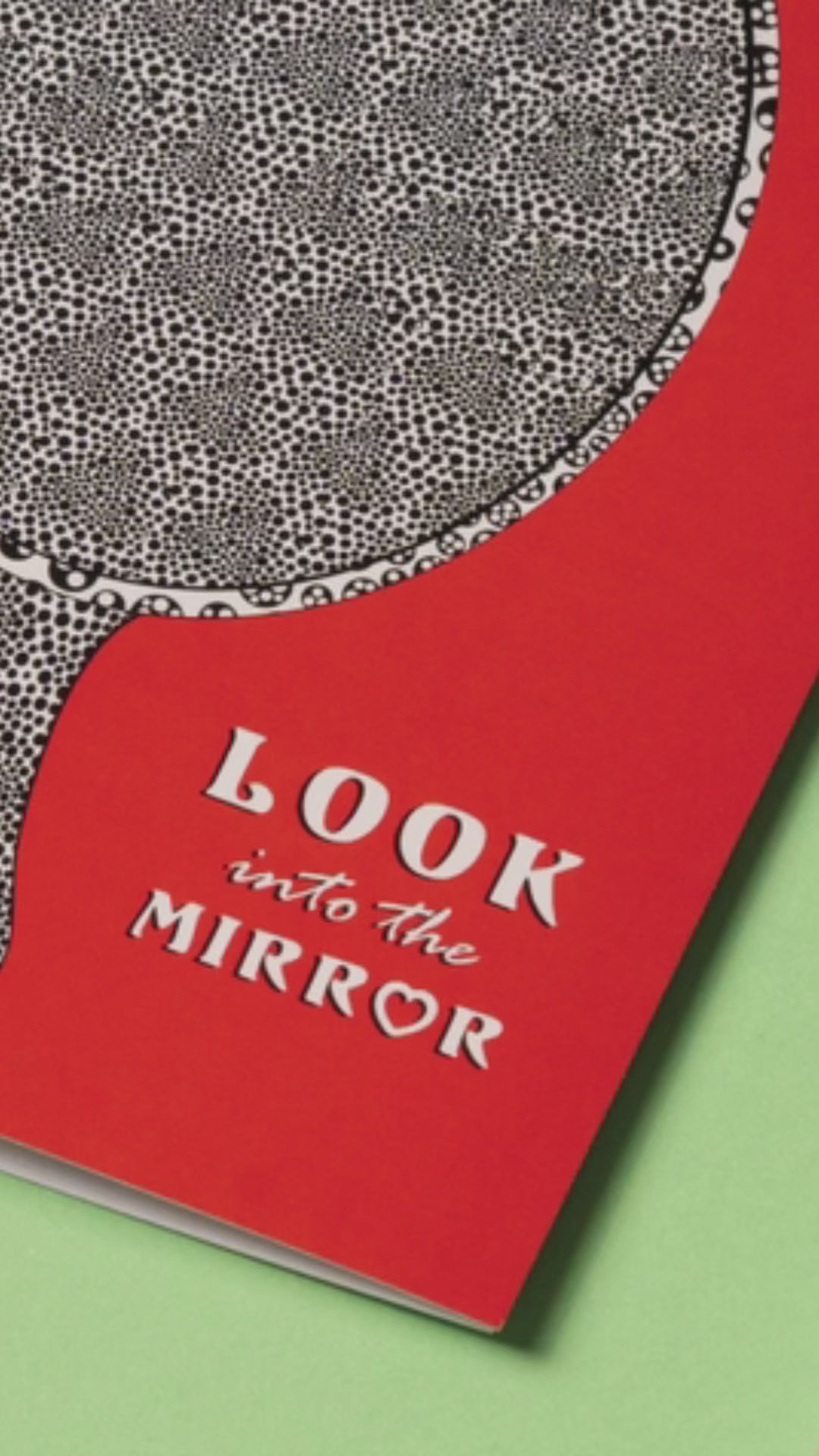 FRONT: Pattern of black dots on white background in the mirror. Hidden message is: UR CUTE